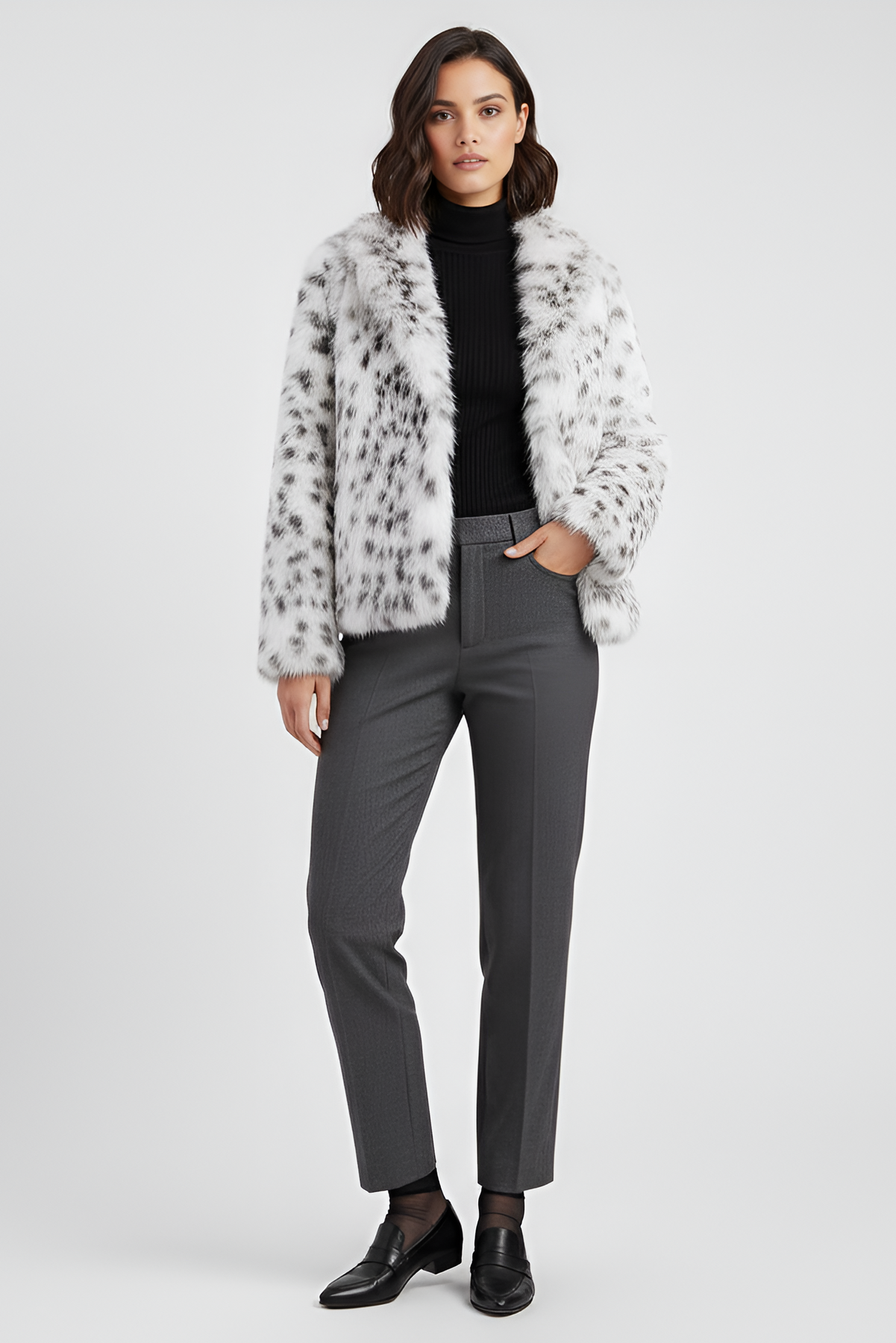 Unleash your bold side with the faux fur coat that turns every winter outing into a style statement. The KAELYN coat brings a luxurious leopard pattern to life soft, plush, and irresistibly chic.