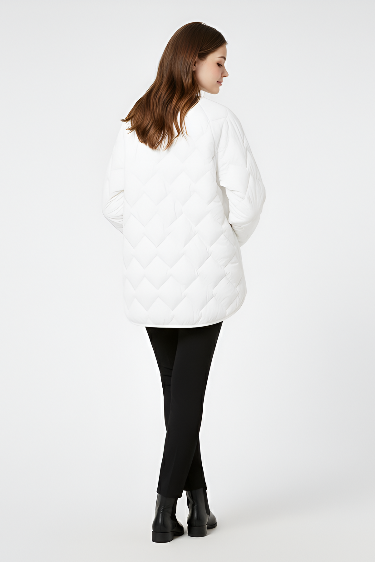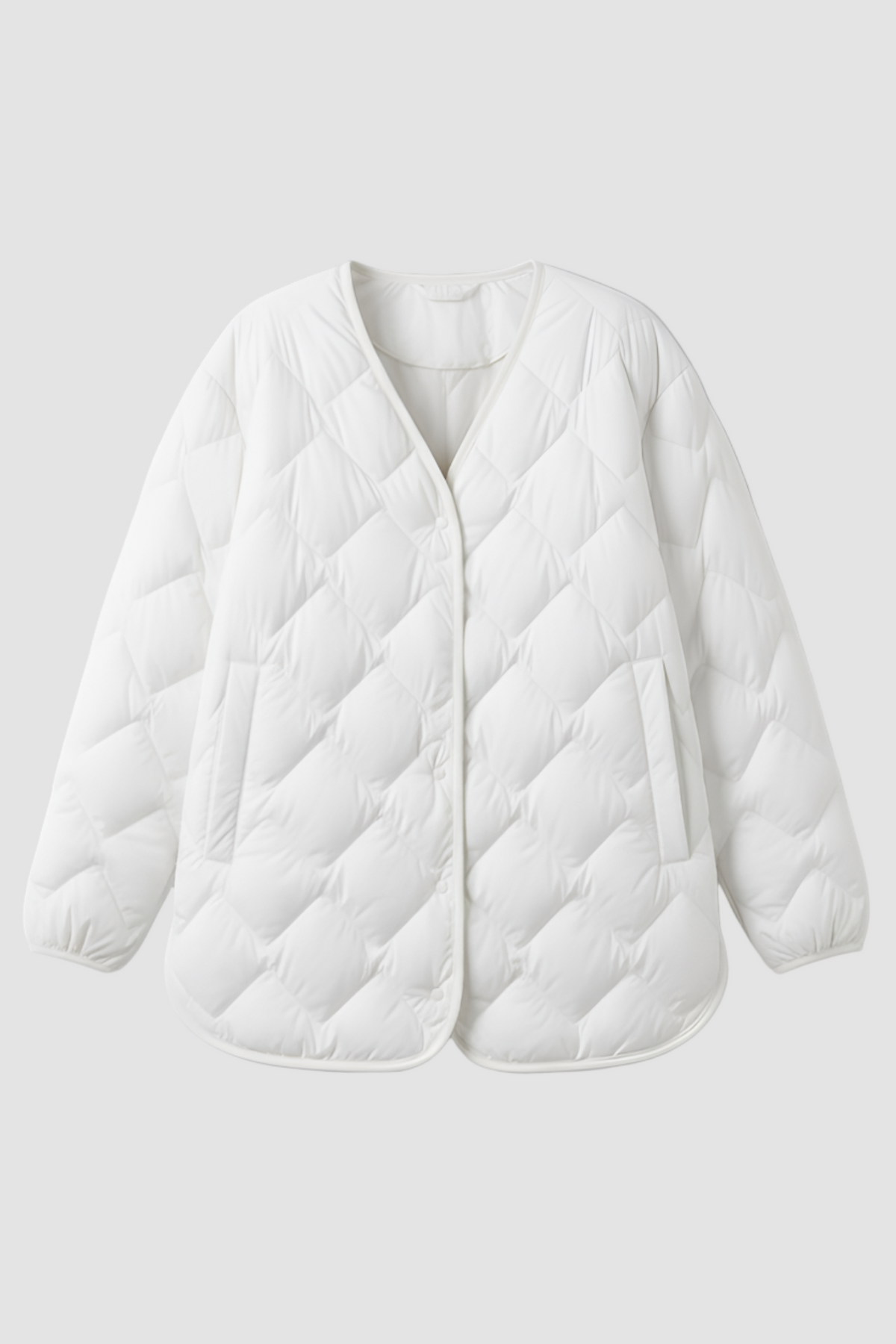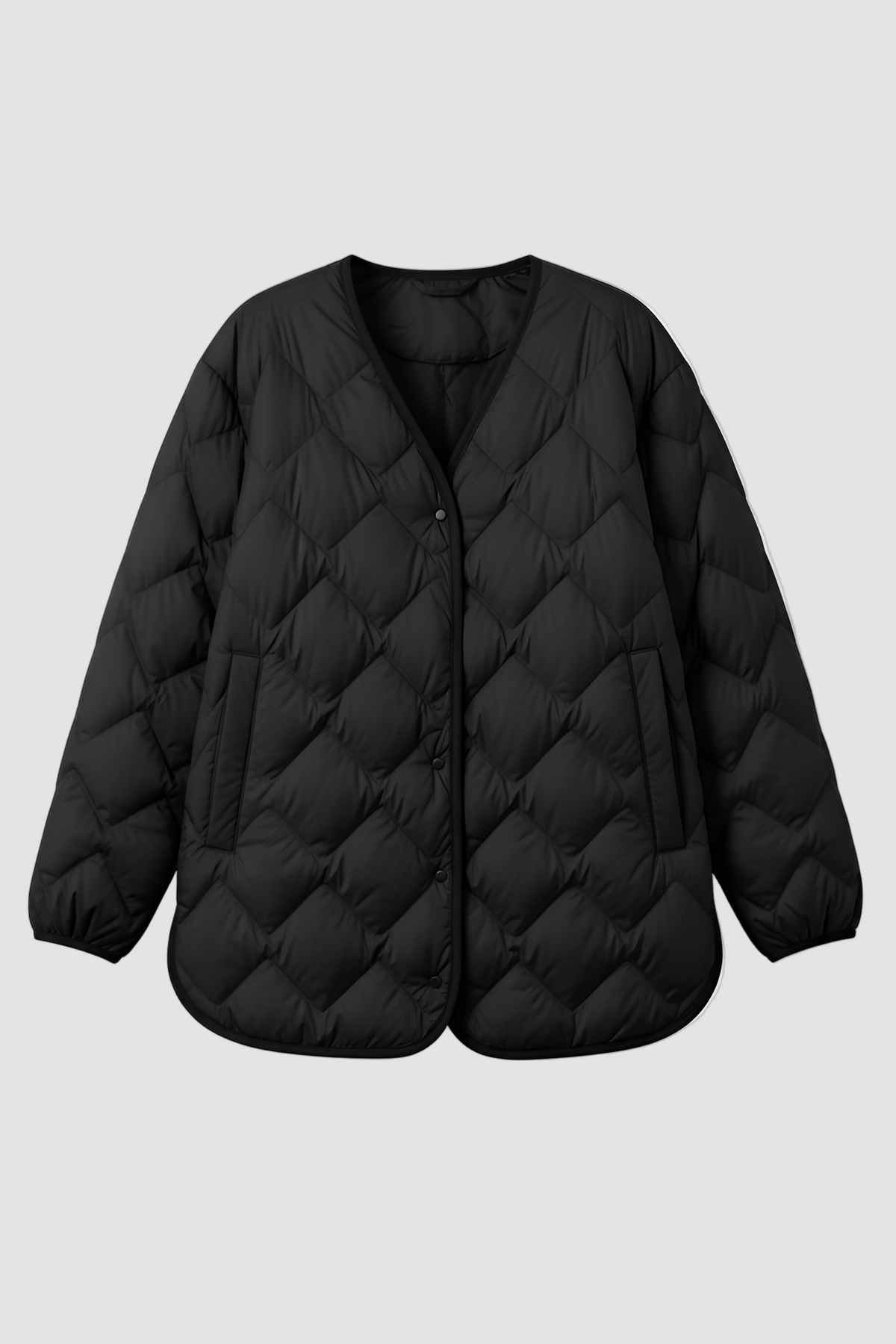 Experience effortless winter comfort with the Lightweight Down Warm Quilted Coat, crafted for women who value simplicity, softness, and everyday elegance. Designed with a clean collarless V-neck silhouette and diamond quilting, it offers streamlined insulation without bulk.
