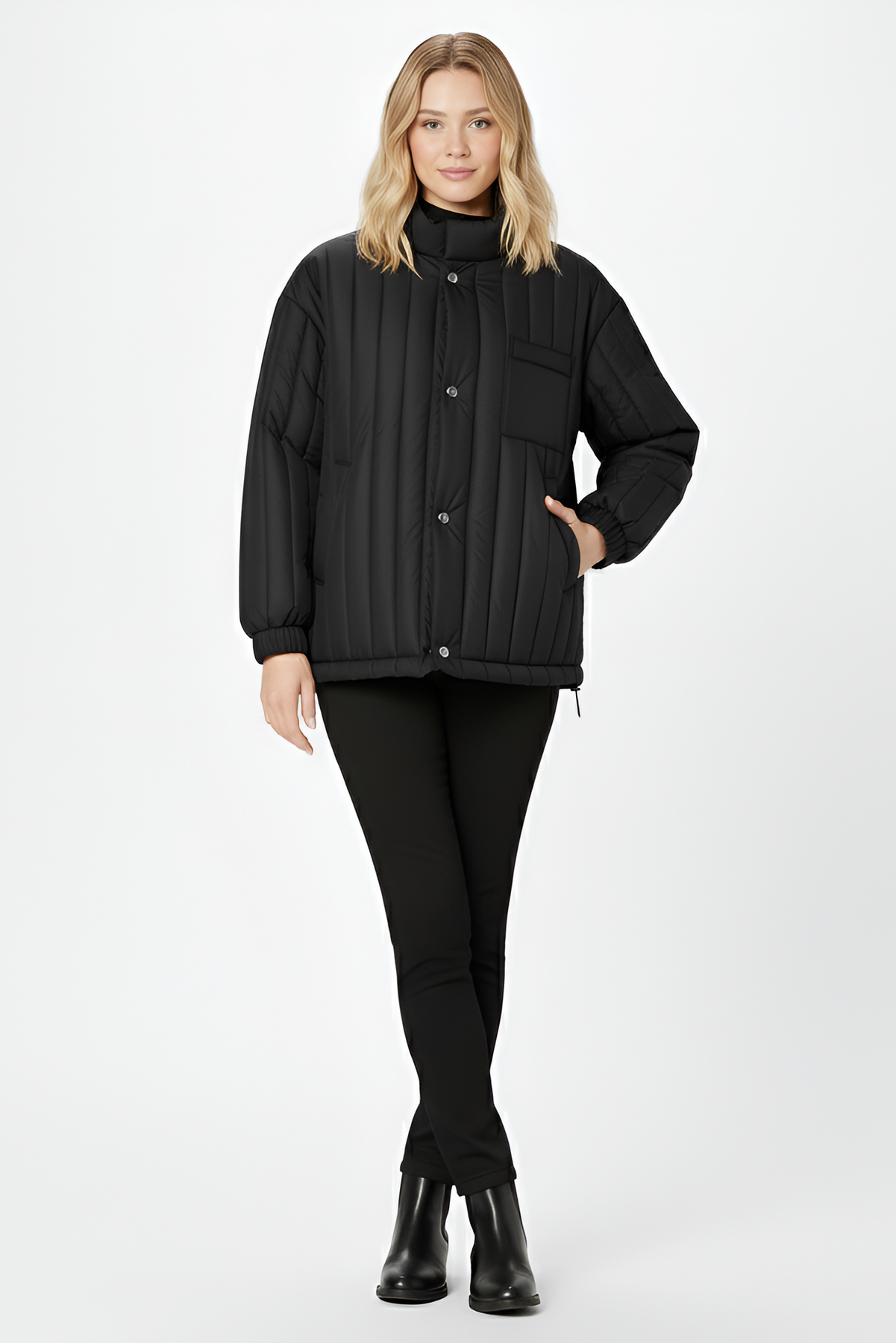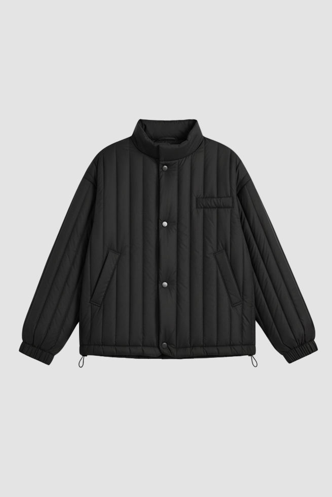 Designed with minimalist vertical quilting, elastic cuffs, and adjustable hem toggles, it seals in heat while keeping movement easy and relaxed. Soft yet wind-resistant, it maintains a premium matte texture and modern understated style across its versatile shades winter white, khaki, noir black, and deep plum.