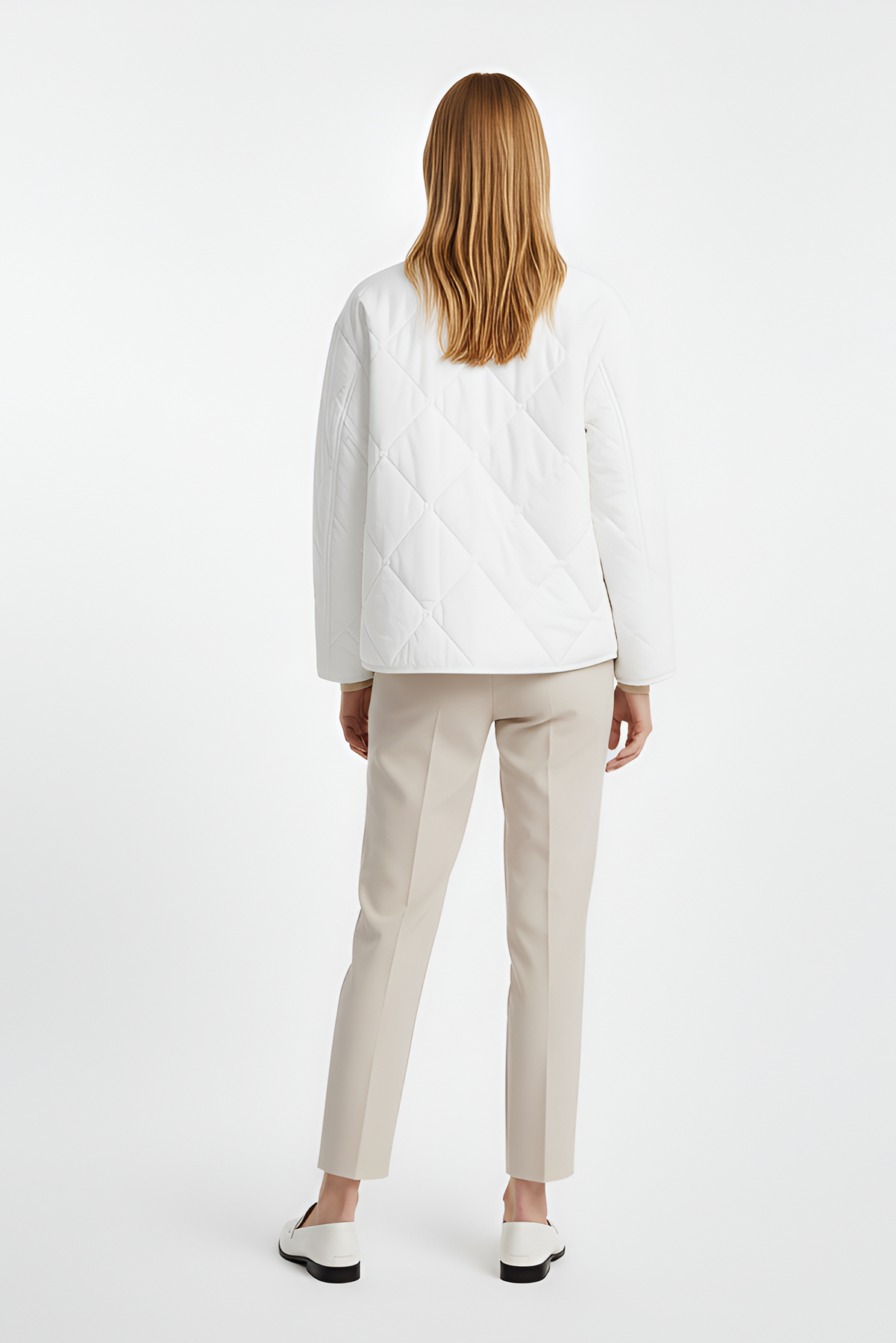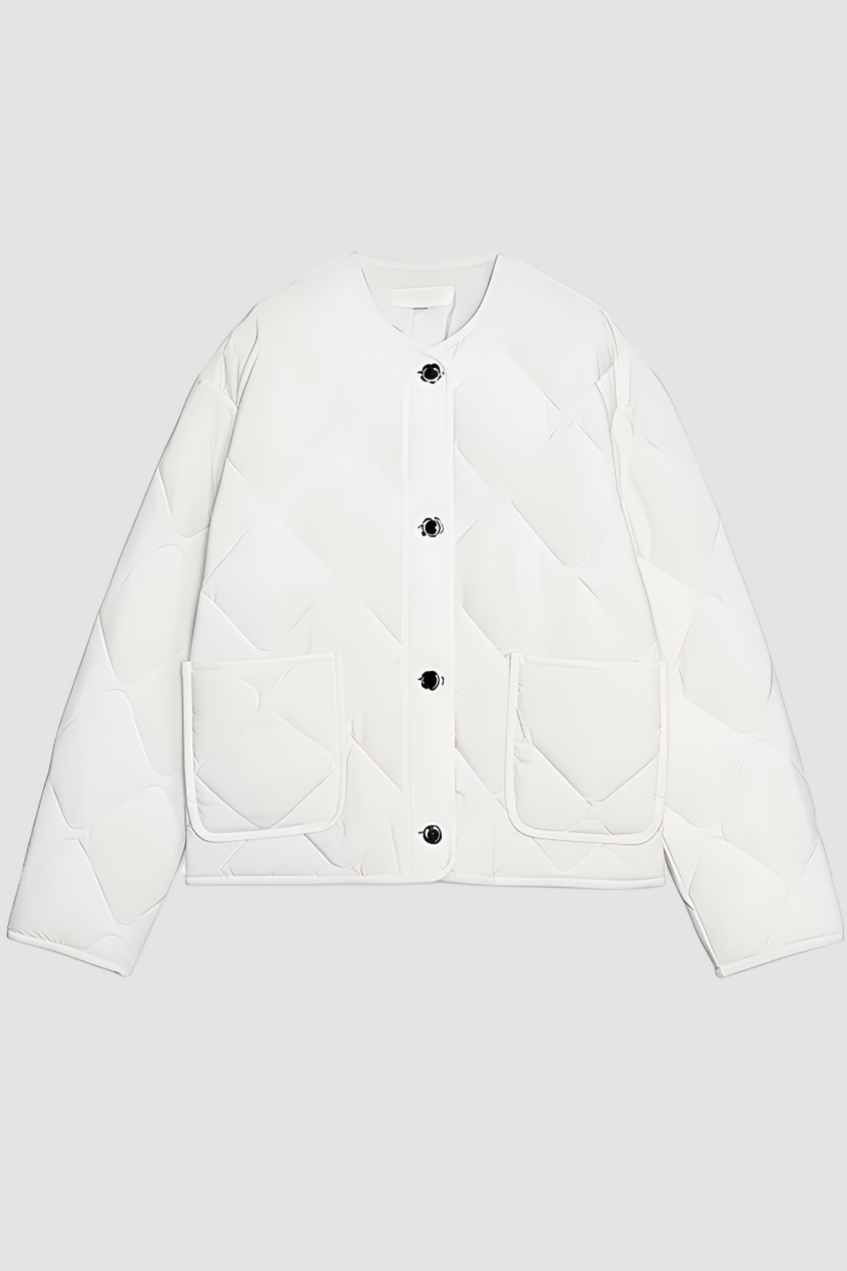 Soft diamond quilting, a clean round neckline, dual front pockets, and a straight hem deliver comfort without compromising refined simplicity. Perfect for outdoor walks, chic city errands, or effortless weekend styling its versatile shape pairs seamlessly with denim, wool trousers, or knit dresses.