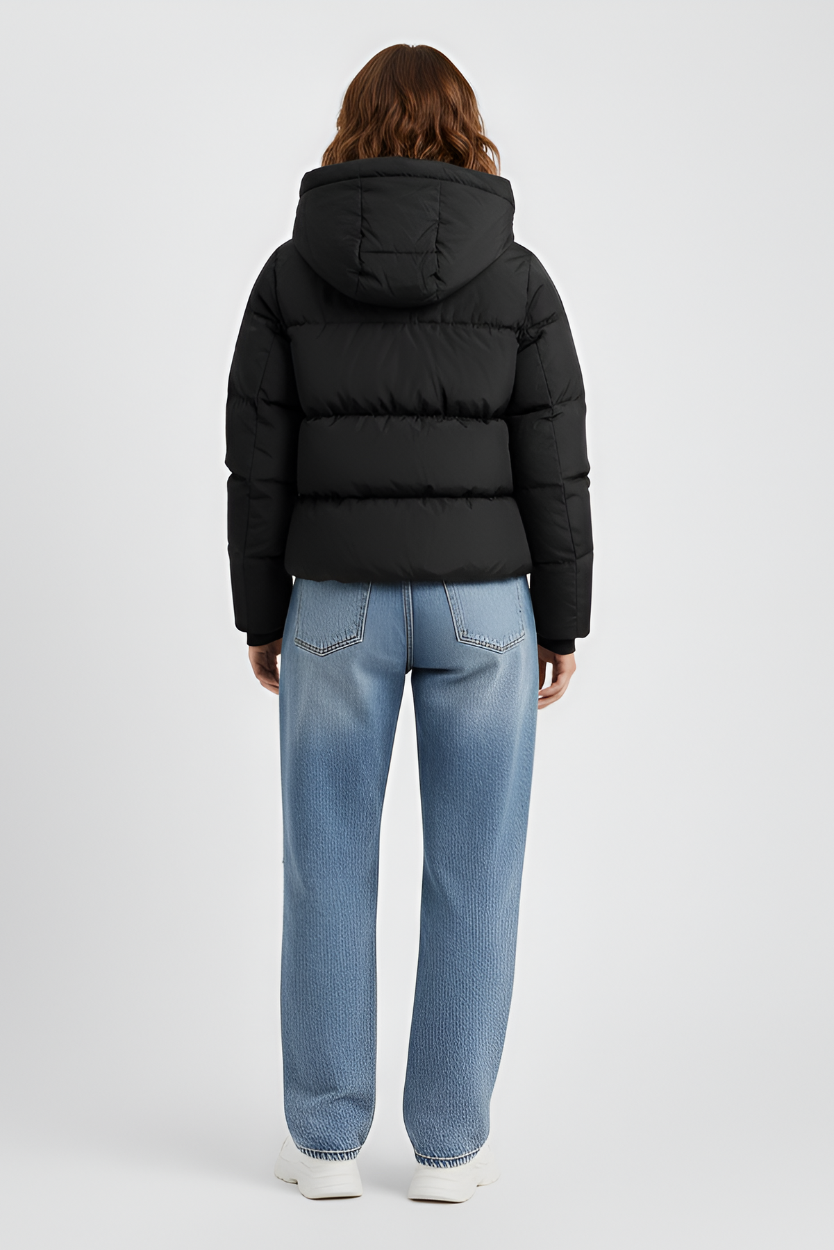 Step out in bold, street-ready confidence with the women’s hooded zip-up puffer coat where comfort meets attitude. Crafted for cold-weather days, this cropped winter essential delivers warmth and edge in equal measure. With its voluminous silhouette and glossy black finish, this jacket brings instant impact to any outfit. The cropped length accentuates your shape while maintaining a relaxed, oversized fit perfect for layering over knits or crop tops.