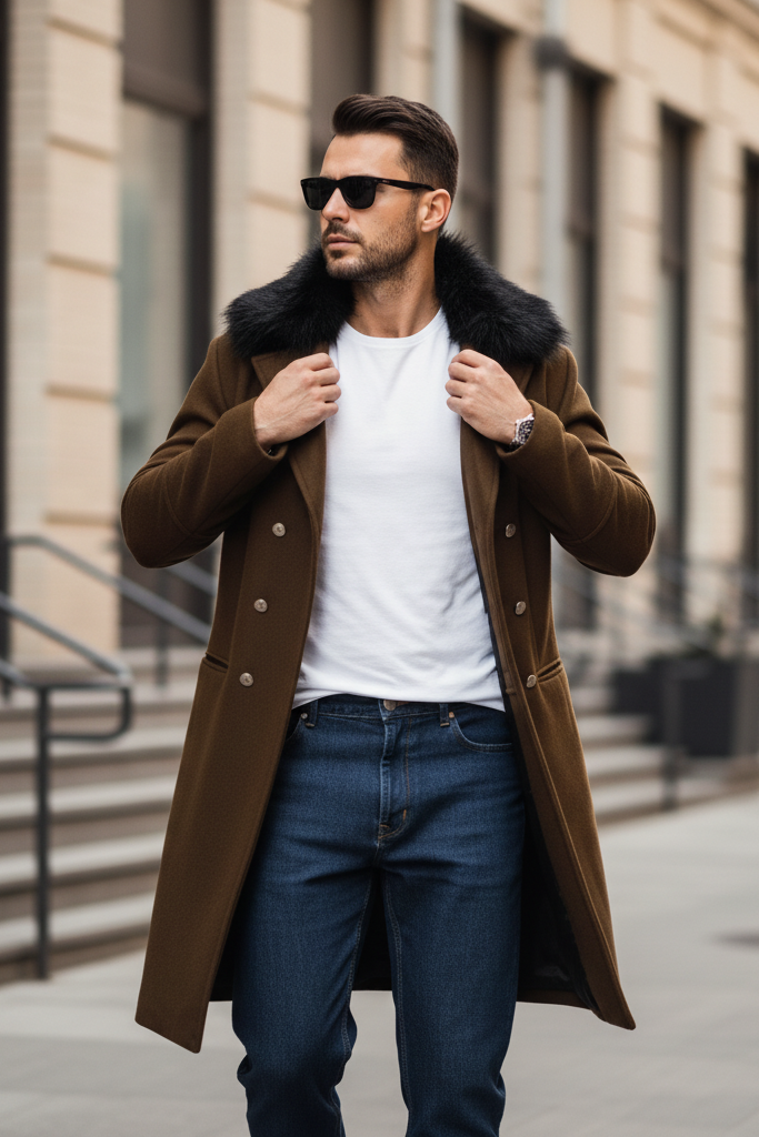 Confectionné dans un tissu résistant en laine mélangée d'une douce teinte tabac, le manteau Harlene incarne un luxe discret. Sa longueur genou et sa fermeture croisée lui confèrent une esthétique intemporelle, tandis que son col amovible en fausse fourrure permet de moduler votre style, d'une allure élégante et sophistiquée à un look décontracté et raffiné. Entièrement doublé et doté d'une ceinture ajustable, il garantit confort et chaleur durant les fraîches journées d'automne et d'hiver.