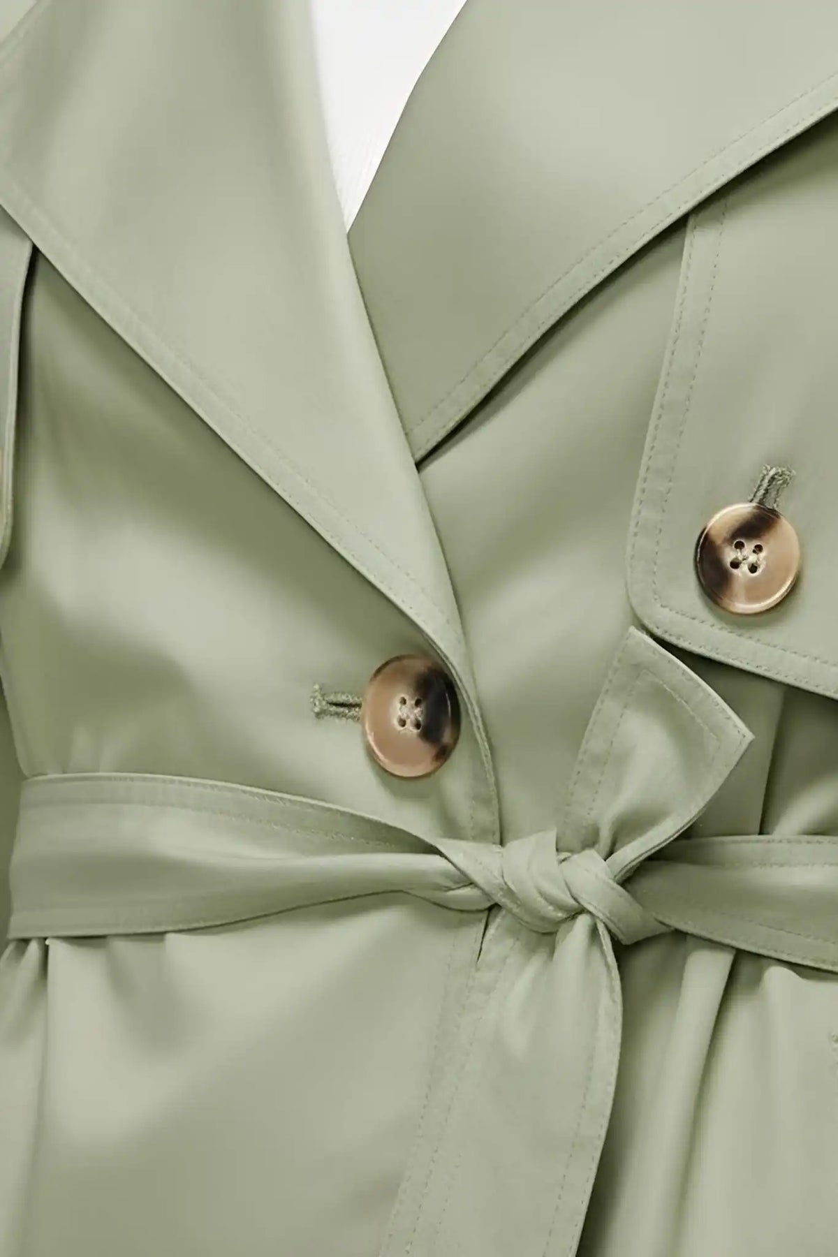 Constructed from eco-friendly woven polyester, the Eiris coat combines sustainability with chic design. The breathable lining keeps you comfortable in changing climates, and the tailored fit ensures a balanced, confident silhouette. Buttons, sash belt, and refined stitching complete this sophisticated seasonal staple.