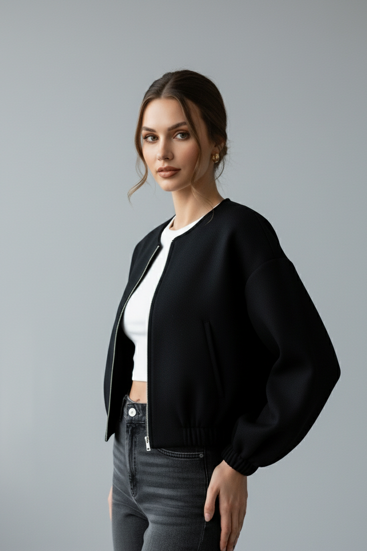 The VALERINE – Velvet Bomber Jacket blends cozy comfort with a playful, street-chic twist. Designed for modern women who love versatile layering pieces, this jacket brings a touch of effortless glamour to everyday outfits perfect for autumn and winter days.